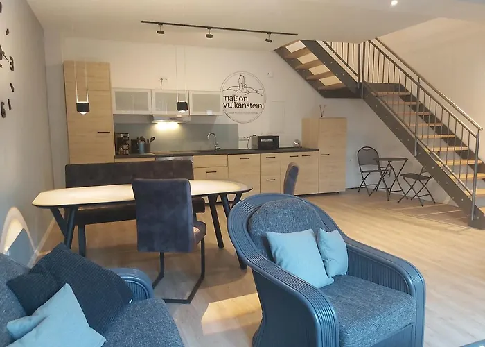 Maison Vulkanstein设有野餐区 和花园,到Rathaus开车只需15分钟. 这栋别墅为客人提供设施齐全的厨房,1间卧室;房内配备写字台,咖啡机/煮茶机 和休息区.